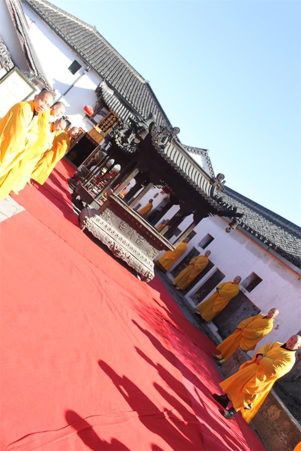 2015年5月23日(農(nóng)歷四月初六),安徽九華山百歲宮傳授三壇大戒第十六天:供十師齋:請十師、供十師齋。上午十時(shí),諸新戒于大雄...