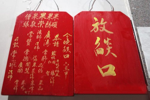 2015年5月23號(農(nóng)歷四月初六),晚6時30分,九華山百歲宮內(nèi)燈火通明,香煙裊裊,法器和鳴,梵唱清揚(yáng),《瑜伽焰口》法會準(zhǔn)時開壇。兩序大眾恭請果崇法師、果朗法師、果碩法師、常飛法師、僧緣法師主法施放焰口,戒子全體參加,并回向超度歷劫冤親、累世父母。