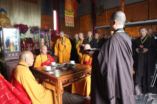 2015年5月23日(農歷四月初六),安徽九華山百歲宮傳授三壇大戒第十六天:供十師齋:請十師、供十師齋。
