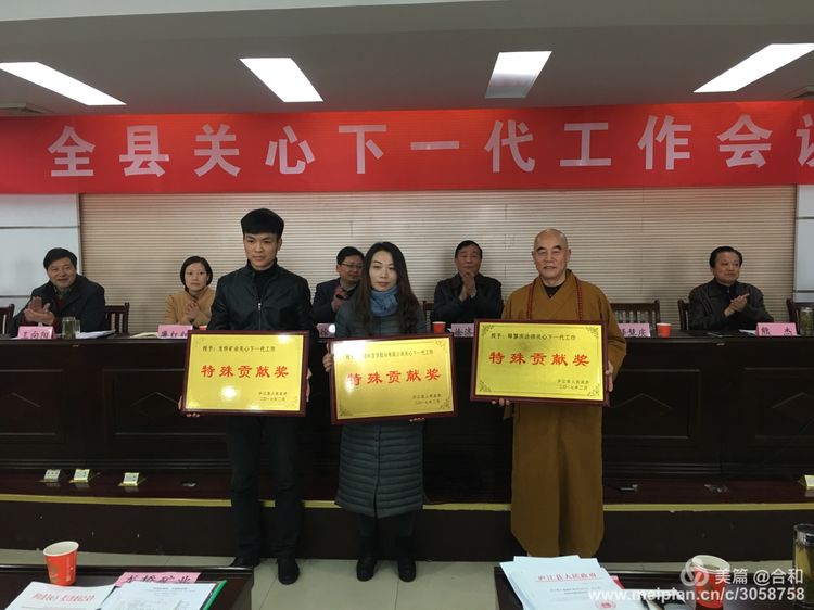 廬江縣委常委、組織部部長、統戰部部長徐生彬先生頒發給慧慶大和尚獲得特殊貢獻獎!
